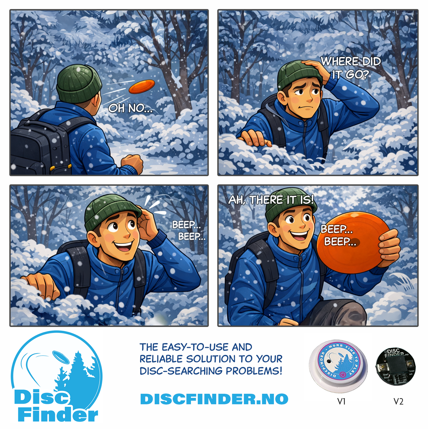 User-friendly | Select the desired time interval before DiscFinder starts beeping. Throw the disc, and if you don't find it before the time is up, DiscFinder will continue to beep until you find it. DiscFinder works every time!
